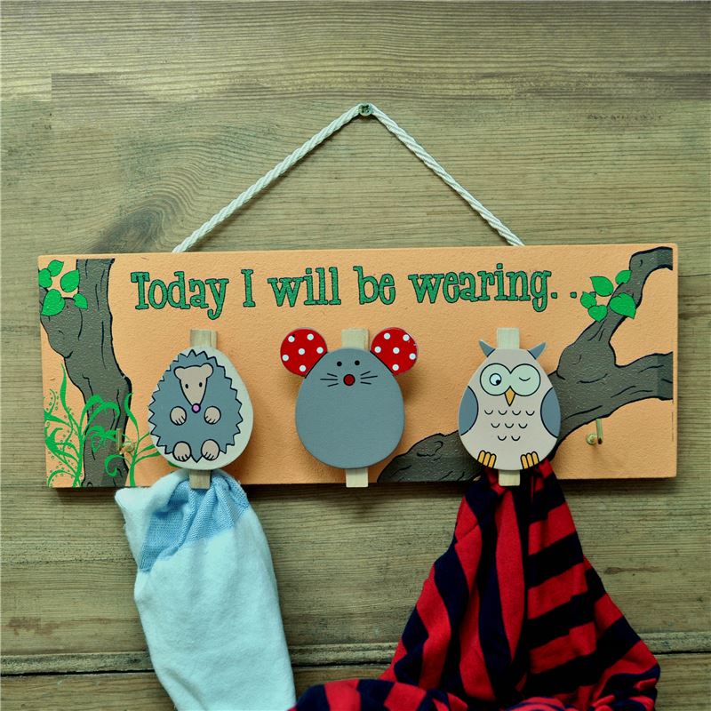 Colourful and fun pegboard for with woodland animal pegs and 2 metal hooks.